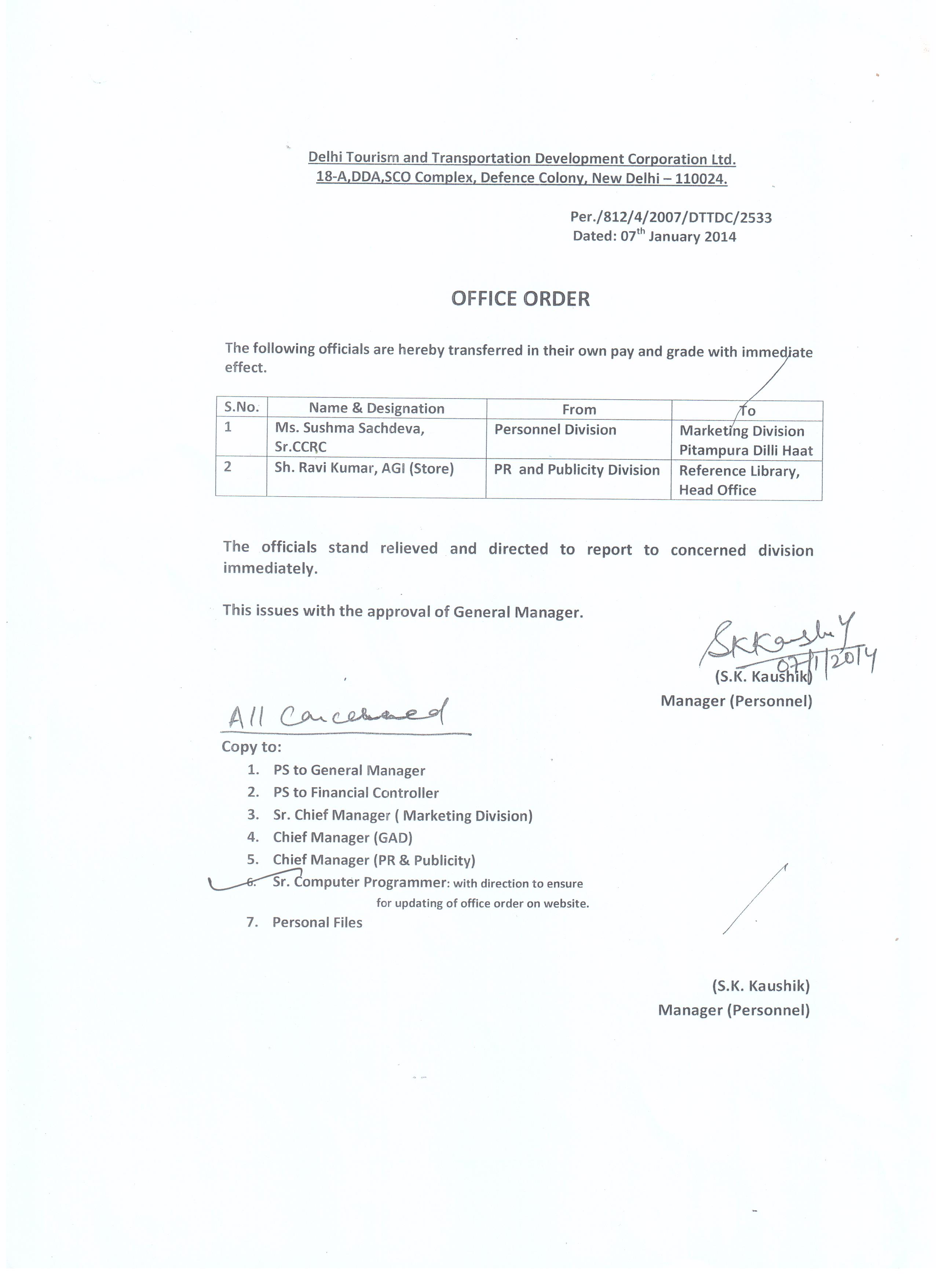 Notice for Recruitment on Deputation in DTTDC (Revised)